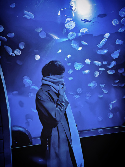 髪型は黒髪のマッシュで、2ヵ月毎にパーマをかけている。 新しい髪型を検討中。