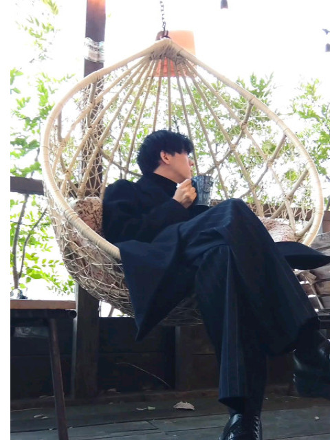 髪型は黒髪のマッシュで、2ヵ月毎にパーマをかけている。 新しい髪型を検討中。
