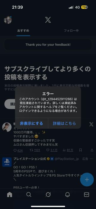 X凍結してます。体調崩してます。