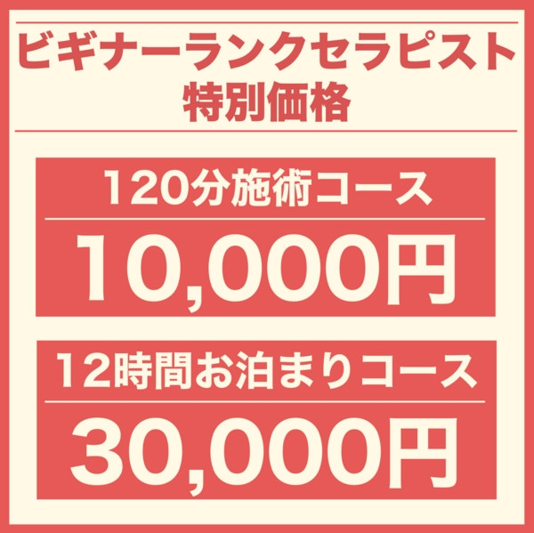ビギナーランクのセラピストは上記価格(指名料込)にてご案内いたします! !