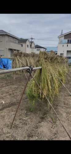 刈った稲は、乾燥のため