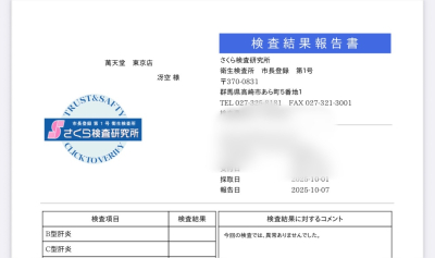8項目全て陰性でした!