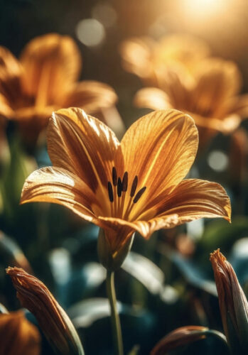 お題は、「静かな夜に咲く、花びらが金色の花を作って!」