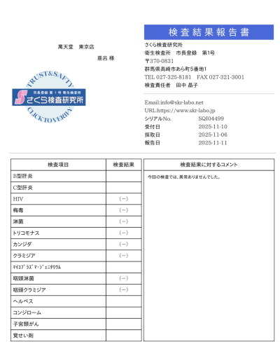 検査結果をWebから閲覧する為のIDとパスワードを持っていますので ご希望の方はお見せ致します。 チャオ