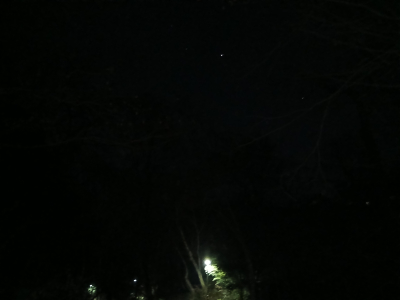 ト。冬の遊歩道から見る 葉、木、星、光、