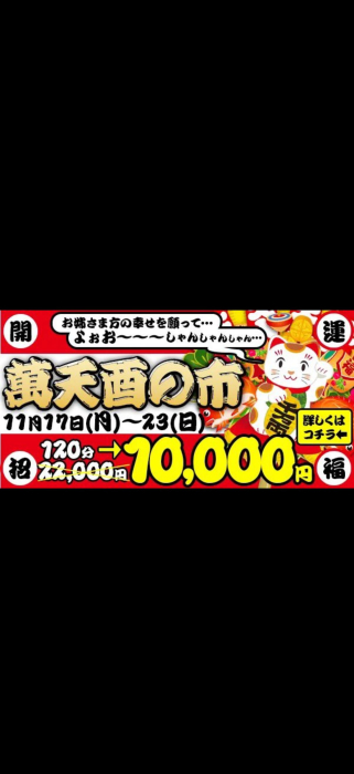 2025-11-0811/17(月)~11/23(日)の萬天酉の市、僕も参加いたします! ▼割引内容 《通常》施術120分コース:22,000円 ↓ のところをナント ↓ 《特価》施術120分コー…