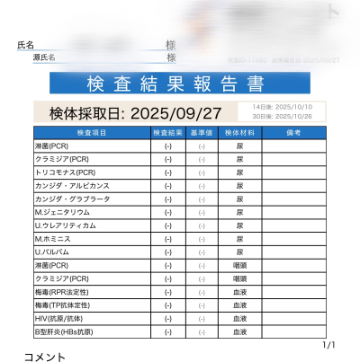 こんにちは、直央です🔰 こういう仕事は安心の上で成り立つ仕事だと思うので、 しっかり検査してきました。 全項目陰性でしたので、心おきなく素敵な時間を過ごしましょう
