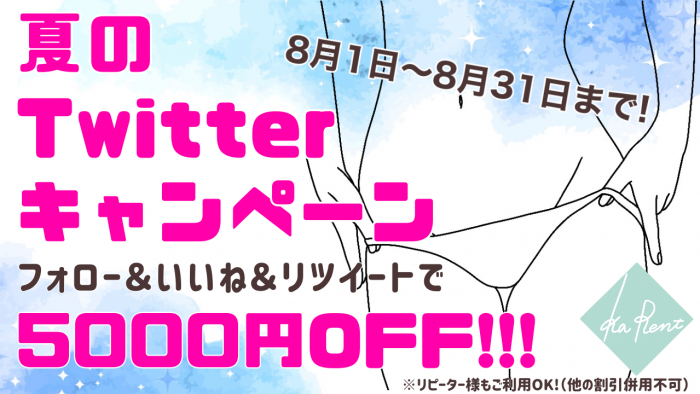 夏のTwitterキャンペーン♡どのコースも5,000円OFF