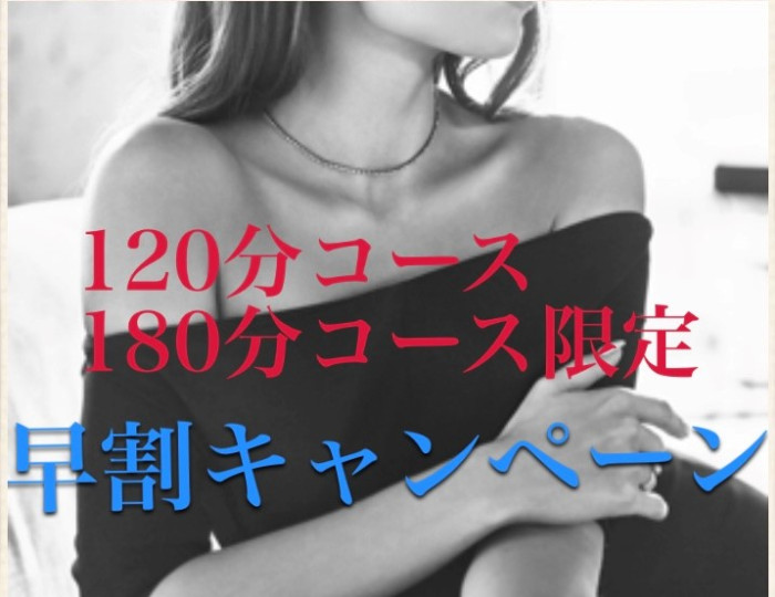 120分コース、180分コース限定で当日より以前のご予約で早割キャンペーン実施致します。