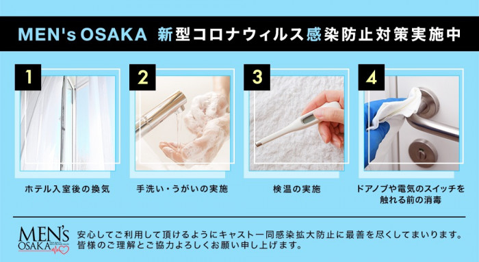 MEN's OSAKAでは、安心してご利用頂けるようにスタッフ・セラピスト一同感染拡大防止に最善を尽くしてまいります。