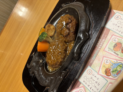 目の前で焼いてくれて完成するハンバーグ🧡
