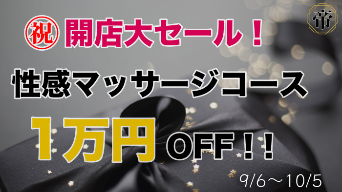 開店を記念して、10月6日まで性感マッサージコース1万円引き大セールを実施します!!