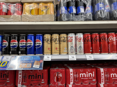 見たことのない青色のジュースや、見たことのないCoca-Colaの缶がありました。。