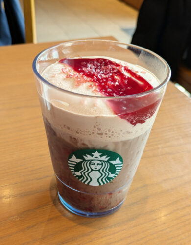 スタバの新作🥤 モバイルオーダーでの注文でエスプレッソショットも追加されて、ほろ苦さも加わった大人の味😋美味しかったです! しかも試飲食も頂いちゃいました☺️