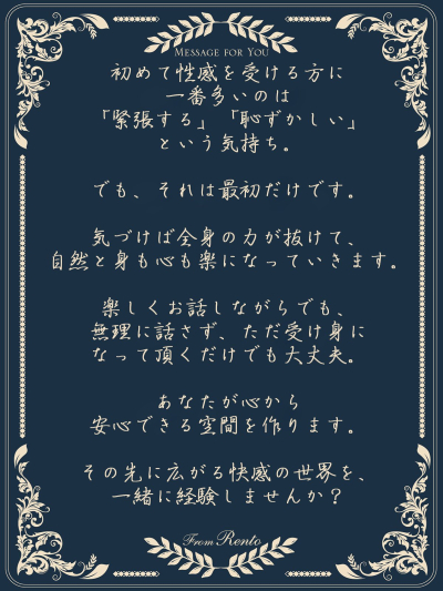今日は寒い朝でしたね。 これからの季節冷たい風に触れるたびに、 少しずつ人肌のあたたかさが恋しくなっていく時期です。 そんな時は無理をせずに誰かのぬくもりに包まれてみてください。 女風…