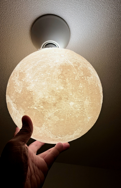 最近は本業の設計が忙しくて幽霊部員ですが、まだ生きてます。 新しい3Dプリンターが来たので試しに月を作ってみました。データはNASAが公開してる物で中から透かすとリアルな月🌕 なかなかいい感じです😌 …