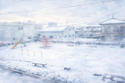 一面、白。 いつもは子どもの声が響く場所も、 今日は静かで、少しだけ別世界。 足跡も少なくて、 時間がゆっくり流れている気がします。 何も起きていない…