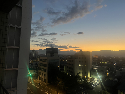 早朝のマンションのベランダからの、、、